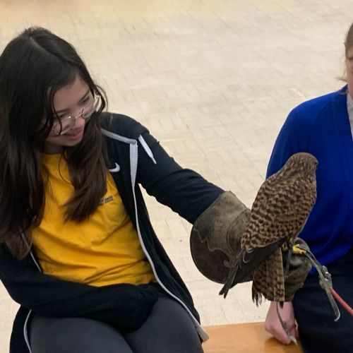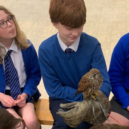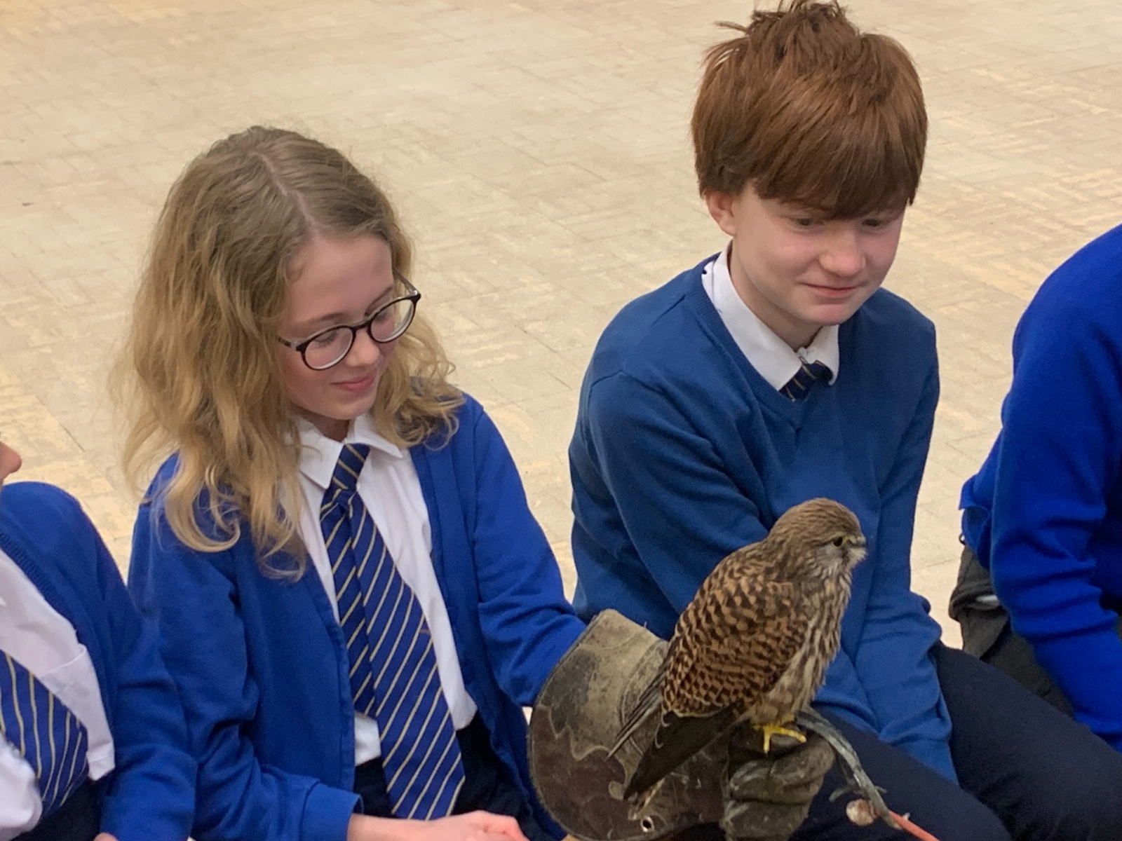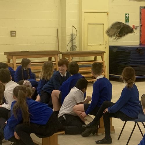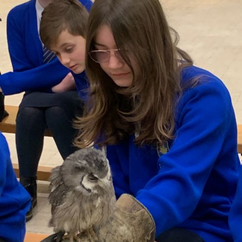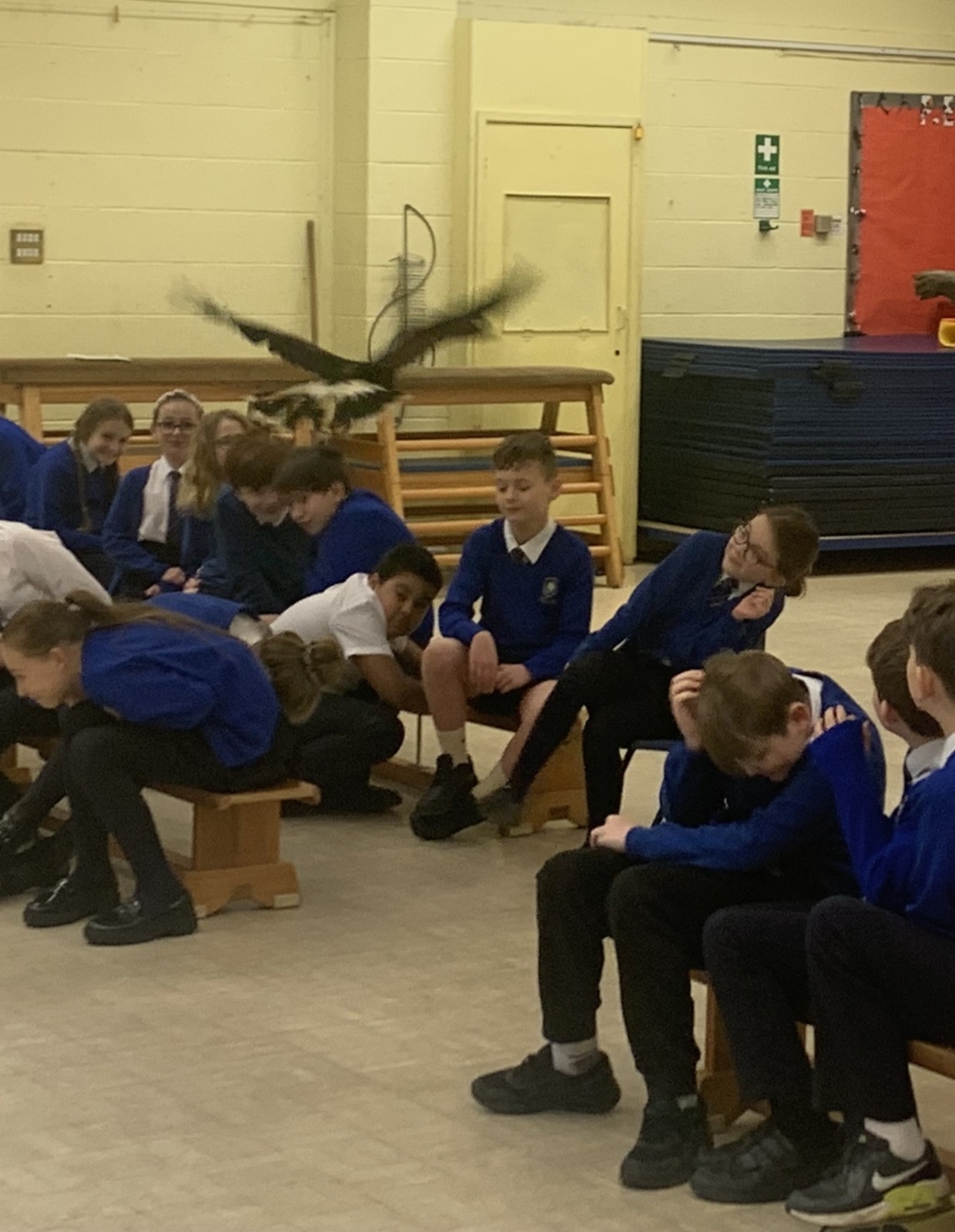 Year 6 had a surprise visit from Herrings Green Bird of Prey Centre today to bring our writing unit on Skellig to a close. We were able to hold a kestrel and a southern-white faced owl. We saw a Harris hawk and a Cape eagle-owl flying. We learnt some amazing facts about owls and birds of prey.