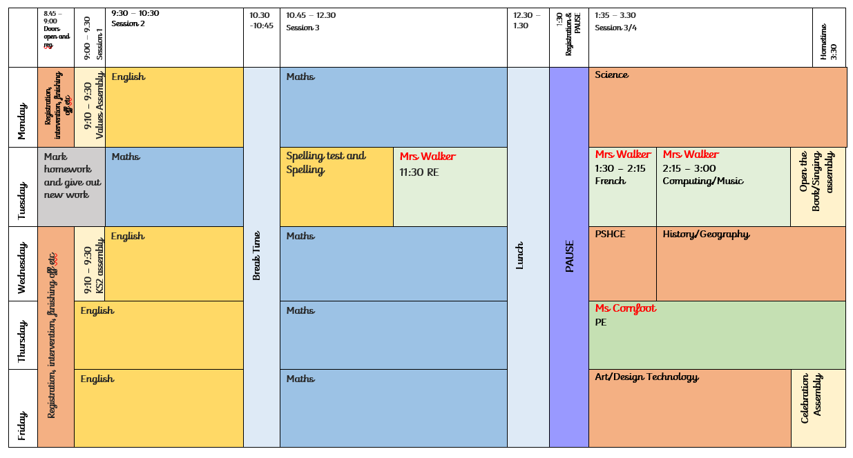 Doors open at 8:45 am. Children will begin work straight away - this can include revision, finishing off work or reading.